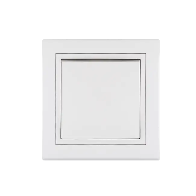 Elektroinstalacioni element tipa naizmeničnog prekidača u ugradnoj konfiguraciji i beloj boji.