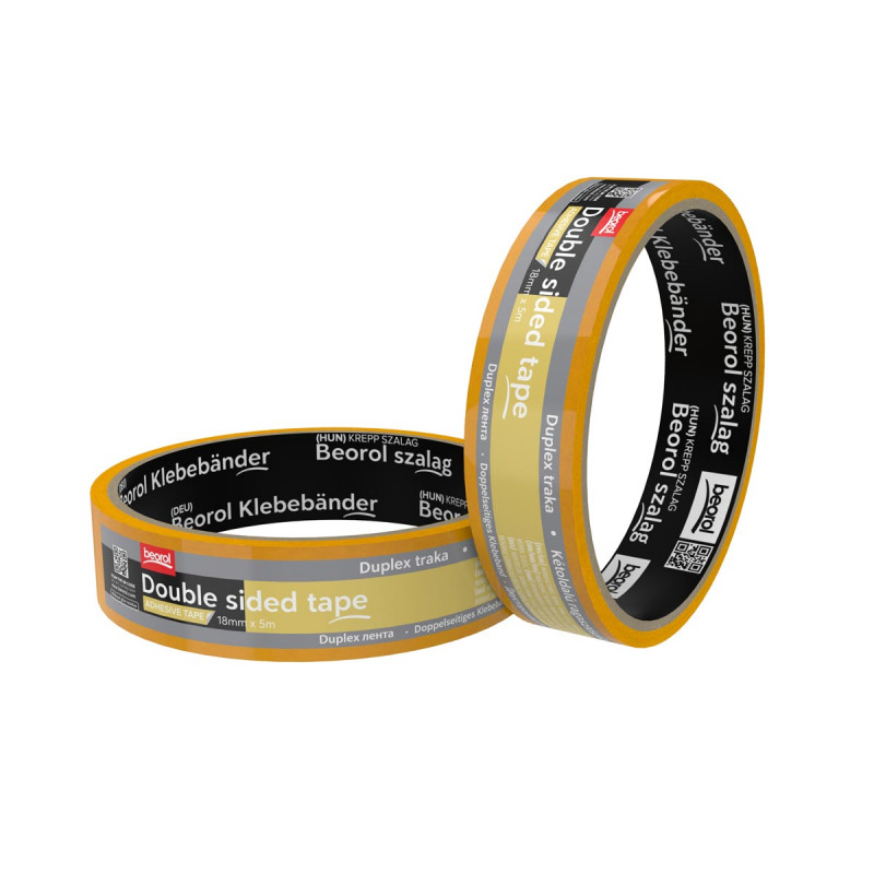 Duplex traka 18mm x 5m je obostrano lepljiva traka na bazi polipropilena sa akrilnim lepkom, pružajući pouzdano i čisto prianjanje.