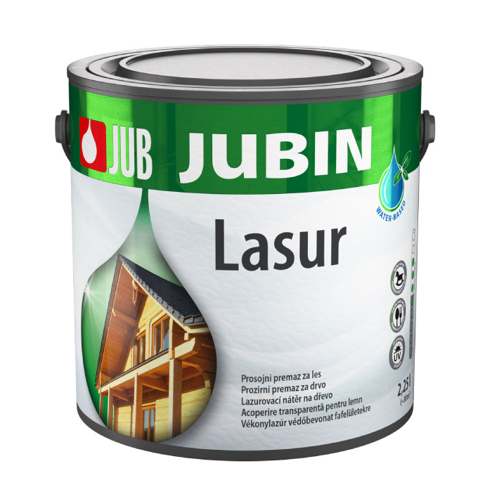 Jubin Lasur je zaštitni premaz za drvo koji pruža dugotrajnu UV-zaštitu i ističe prirodni izgled drveta sa svilenkastim sjajem. Brzo se suši, nije štetan za okolinu i može se koristiti za bojenje dečjih igračaka i površina u kontaktu sa hranom.