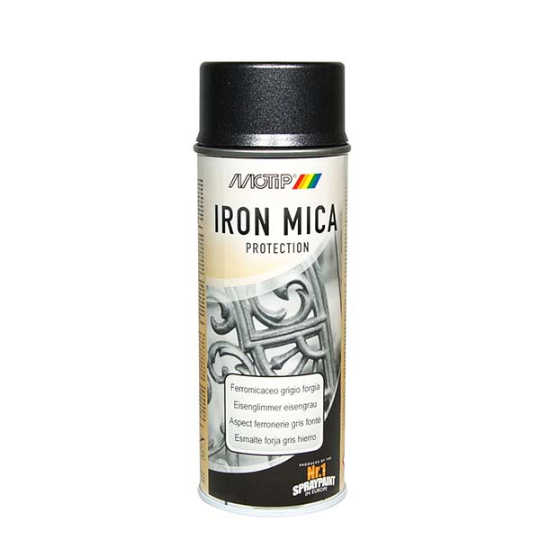 MoTip Iron Mica sprej je visokokvalitetna sintetička boja koja kombinuje zaštitu od rđe, prajmer i završni premaz u jednom proizvodu. Sa efektom starog metala i satenskim sjajem, idealan je za metalne površine poput baštenskih ograda, kapija, alata i igrališta, pružajući dugotrajnu zaštitu i estetski privlačan izgled. Sprej odlično prijanja na podlogu, ne zahteva prajmer, brzo se suši i otporan je na UV zračenje i vremenske uslove.