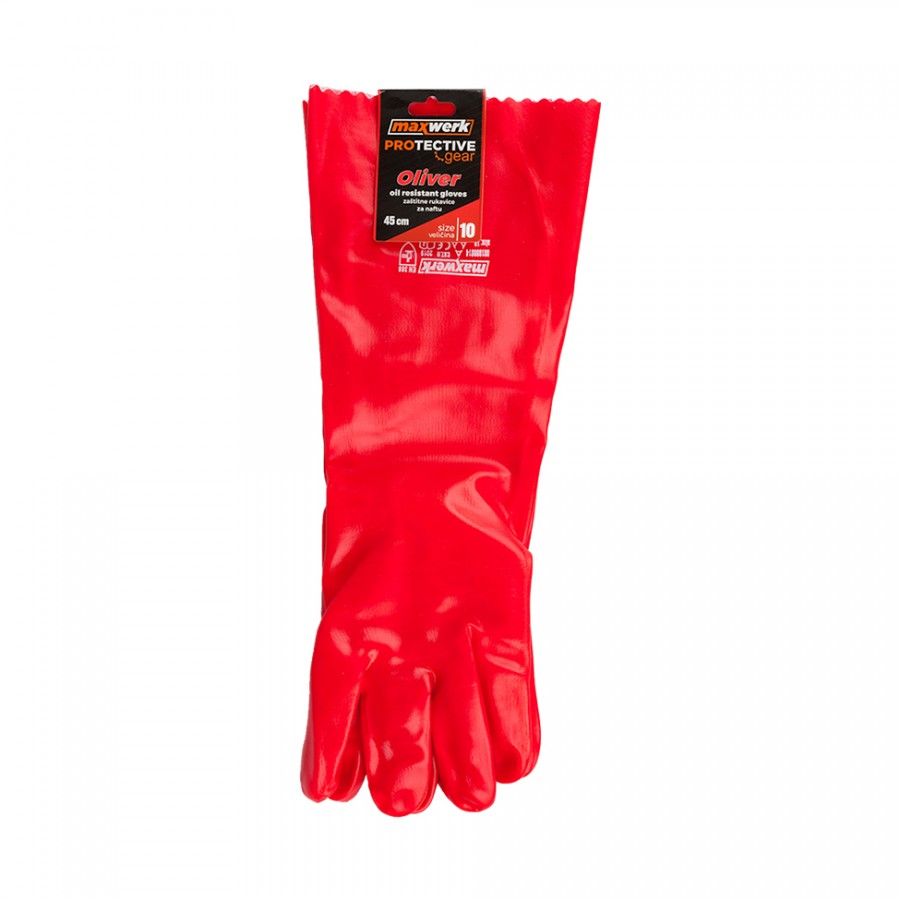 Rukavice OLIVER od brenda Maxwerk, omogućavaju upotrebu u uslovima rada u naftnoj i rafinerskoj industriji, železnici, rukovanju opasnim materijama i materijalima. OLIVER rukavice nalaze se u jednoj veličini. Sastav od PVCa donosi ispunjenje svih standarda u svakodnevnom radu.