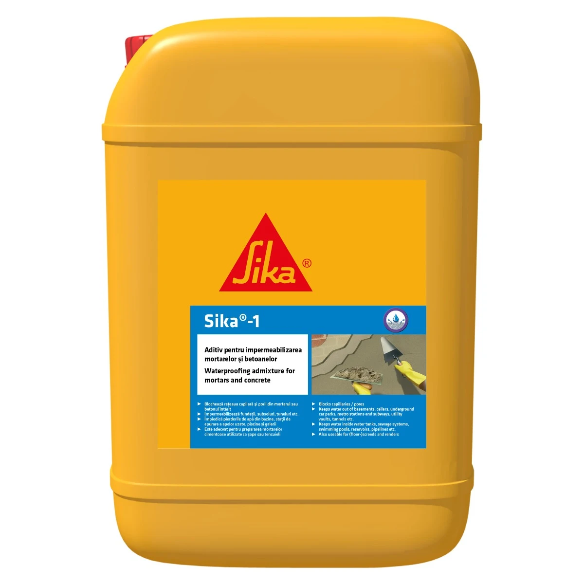 Tečni dodatak za vodonepropusnost maltera. Sika®-1 se koristi za poboljšanje vodootpornosti maltera i betona i to kao dodatak za: cementne maltere za malterisanje unutrašnjih zidova, cementne maltere za spoljašnje malterisanje, cementne košuljice. Sika®-1 sadrži sastojke koji su doprinose povećanju hidrofobnosti i koji zatvaraju pore. U čvrstom stanju poseduje smanjenu sposobnost upijanja i vodootpornost. Betonska podloga mora biti stara minimalno 3 nedelje. Infiltracije vode se sprečavaju zaptivanjem sa Sika-4a. Sika®-1 se upotrebljava samo za prskani premaz. Sa nanošenjem sledećih slojeva sačekati 14 dana. Gotov rastvor treba češće promešati i upotrebiti u roku od 12 sati. Rastvor se dodaje gotovoj mešavini cementa i peska, dok se ne postigne željena konsistencija. Minimalno vreme mešanja u zavisnosti od tipa mešalice iznosi 2-3 minuta.